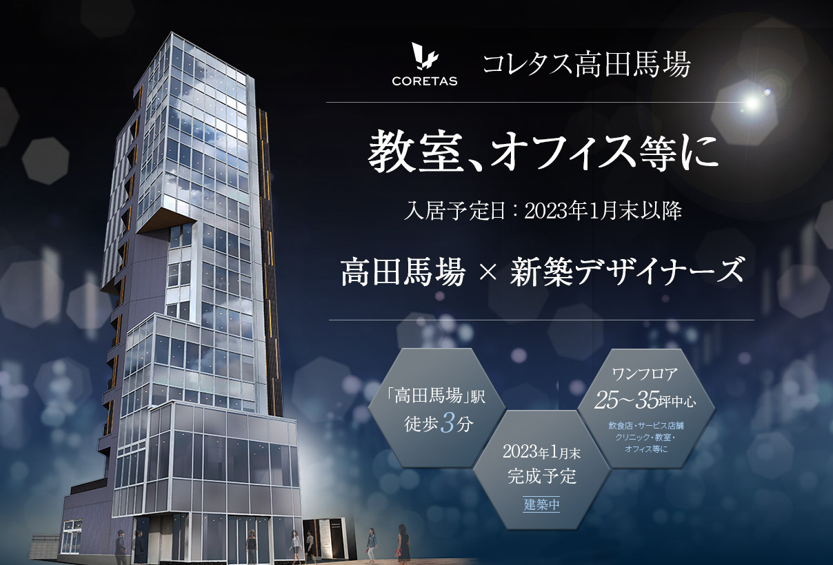 全13フロアの「コレタス高田馬場」、入居テナント募集開始。教室系やスタートアップに最適。
