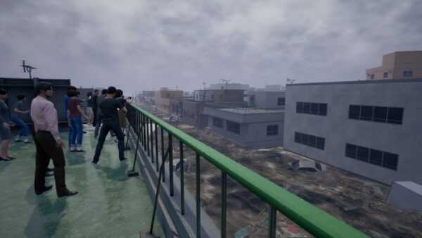 街に大津波警報が響き渡る中、避難場所への避難を試みます。