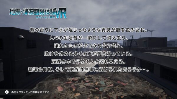 津波によって破壊された街がどのような状況になるのかをテキストで確認しながら、体験したストーリーにおける自身の対応を振り返るということです。