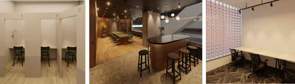 シェアオフィス152区画/防音個室5区画/受付/ラウンジ/カフェバー/WEBブース/会議室/法人登記可/Wi-Fi完備/コピー複合機
