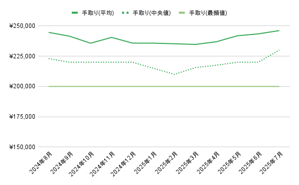 中央値:¥230,000(前月比 +¥10,000)
