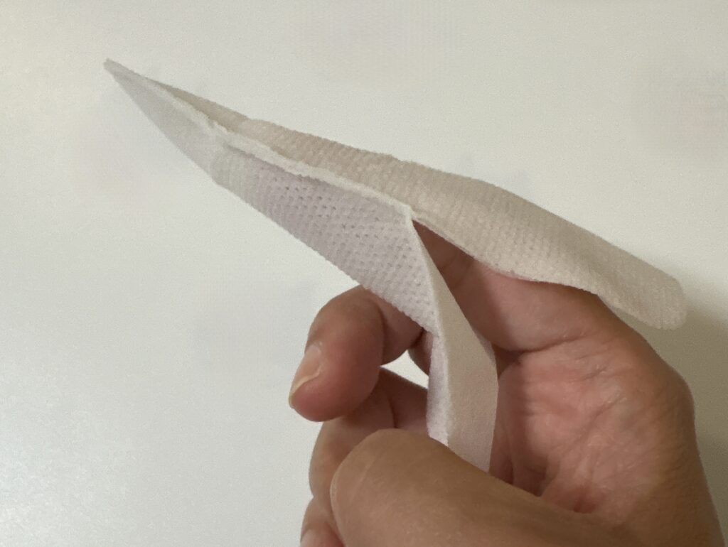 不織布は破れにくく、爪で汚れをこそぐようにしても破れません。
