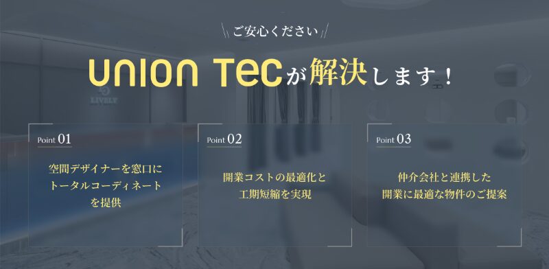 こうした課題に応えるべく、ユニオンテック株式会社は 不動産と空間設計を融合した新しい開業支援サービス を立ち上げたということです。