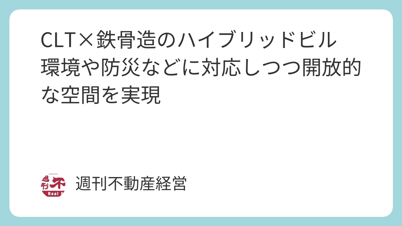 建設地はさいたま市大宮区大門町。建物は建築面積255・77㎡、延床面積1272・31㎡、構造は鉄骨造+CLT耐震壁で、地上5階建て。