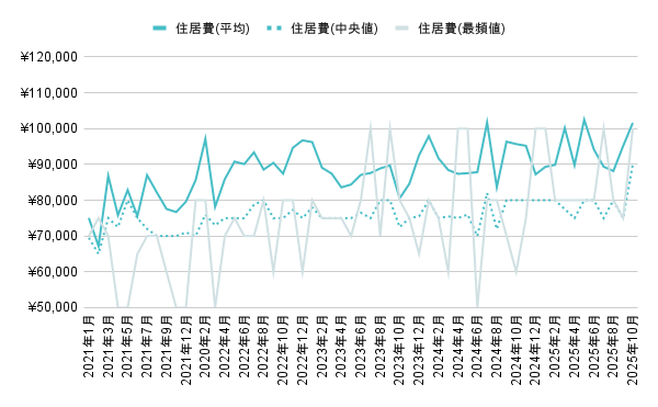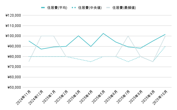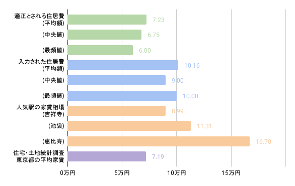 一方、入力された住居費は、平均額・中央値・最頻値ともに東京都の平均家賃を上回りました。人気駅の家賃相場との乖離も少なく、より現実的な数字となっていることがうかがえます。