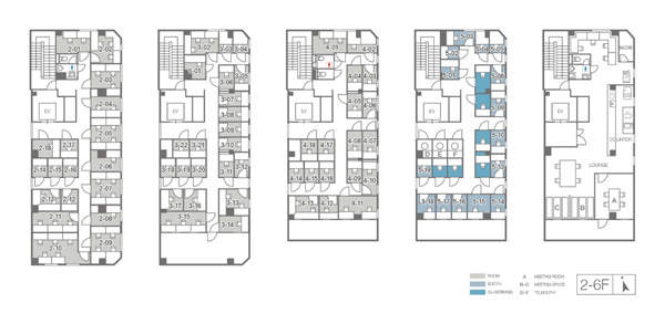 オフィス仕様:コワーキング30席、1名ブース15室、1名個室41室、2名個室8室、3名個室5室、4名個室3室、5名個室1室、会議室(4名)1室 、TELブ―ス3室