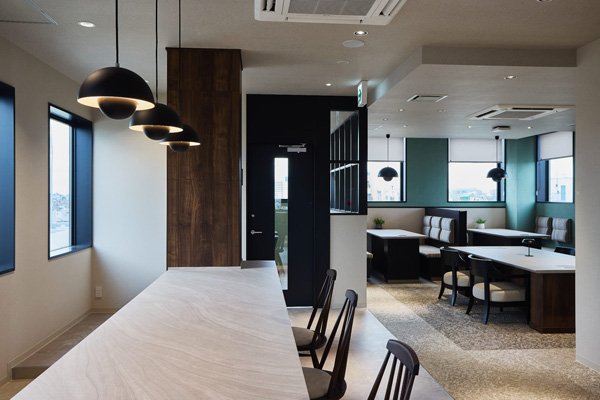 東西に延びる商店街を中心に多彩な店舗が軒を連ね、かつて学生街として親しまれた雰囲気は残しつつ、個性豊かなお店も広がる学芸大学の街に自然と溶け込むことを目指し、懐かしさと洗練さを併せ持つミッドセンチュリーをテーマにしたオフィスデザインが採用されています。