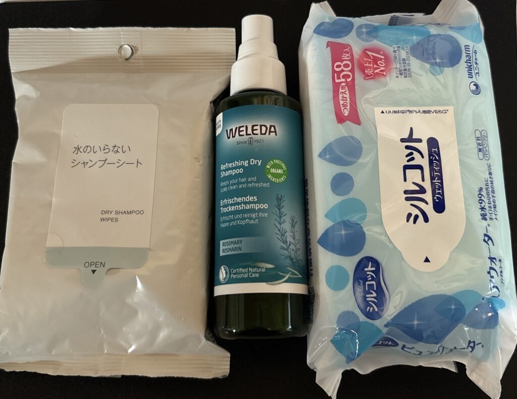 防災グッズレビュー。無印良品「シャンプーシート」。ドライシャンプーとの比較も