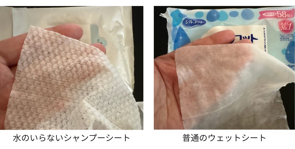 水のいらないシャンプーシートと普通のウェットシートの比較|筆者撮影