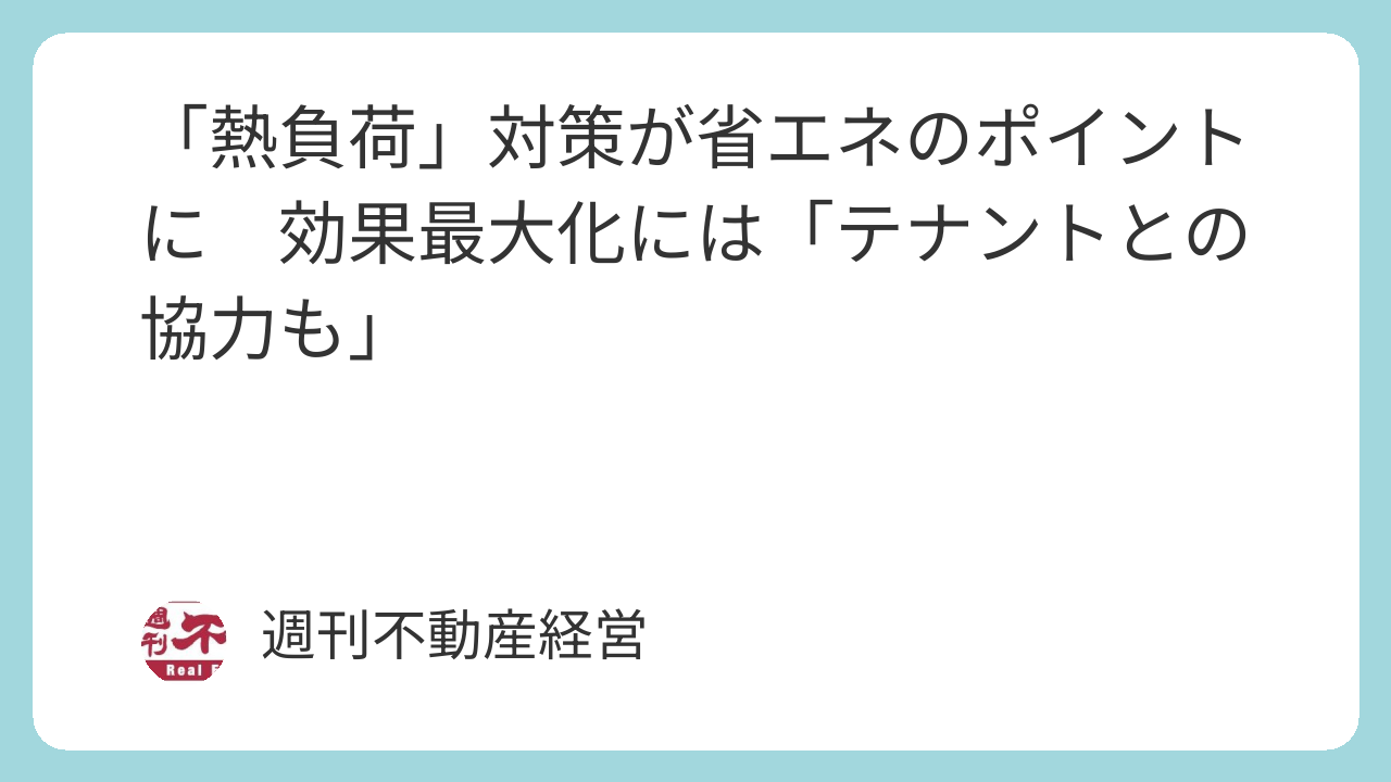 「熱負荷」対策が省エネのポイントに 効果最大化には「テナントとの協力も」