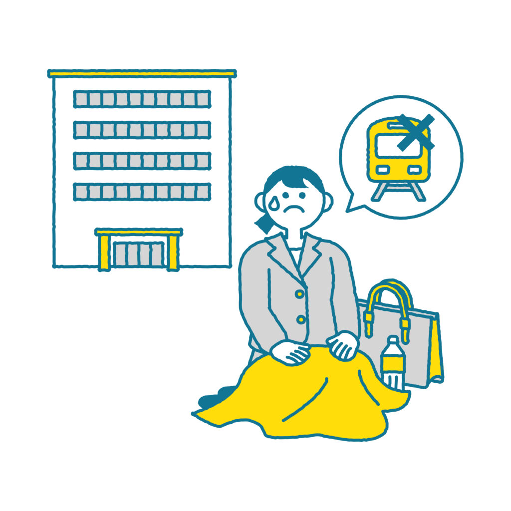 会社や一時滞在施設で1晩〜数日を過ごすための備えを行いましょう。