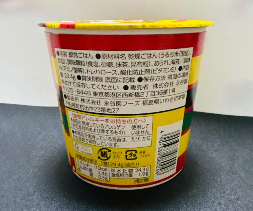 今回は非常時を想定して「カップ入り お茶づけ海苔」を実食し、レビューします。