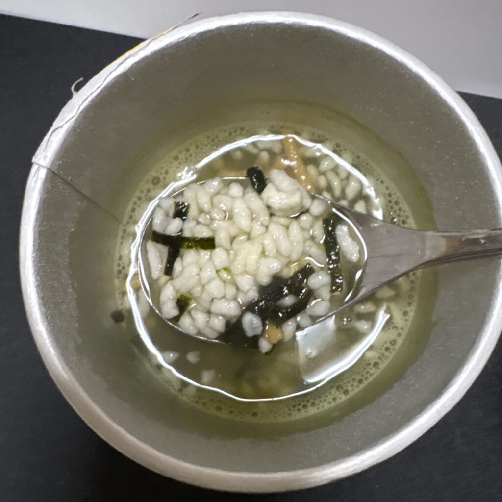 △ ちなみに、規定どおり約180mlのお湯を注ぐと、スープの味はややあっさりめ。