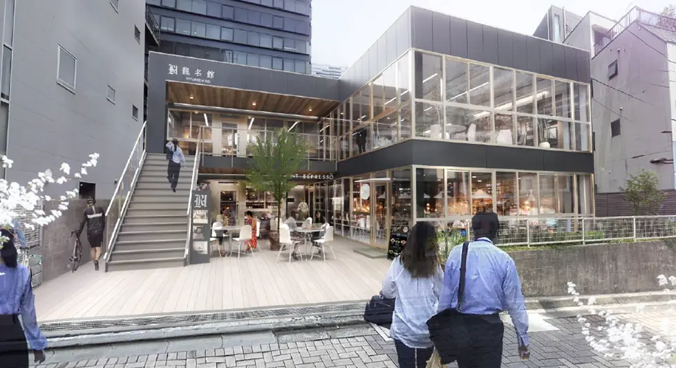 建物は敷地面積427・66㎡、鉄骨造地上2階建て。外観には路地裏の趣を感じられるデザインを採用し、多様な業態のテナントが出店できる設計としている。店舗区画は開放感のある店舗からプライベート空間を重視した店舗まで、幅広いニーズに対応。1階の店舗前には、人が滞留できるゆとりあるアプローチ空間を配置した。