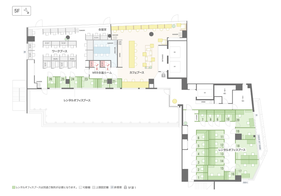 「BIZcomfort高田馬場」では、利用シーンに応じたブースが用意されています。