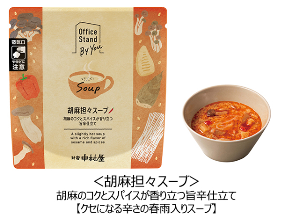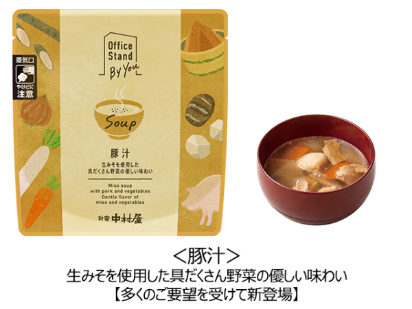 株式会社中村屋の、スープを提供する法人向けオフィス常設型の社食サービス「Office Stand By You(オフィススタンドバイユー)」から、「豚汁」・「胡麻担々スープ」の2品が新たに提供開始されました!