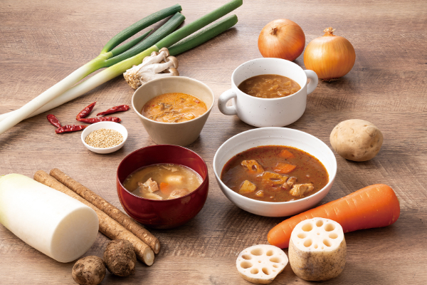 このたび、和風の「豚汁」と中華風の「胡麻担々スープ」が追加されました。ラインアップが8種類に増えたことで、健康が気になるときやリフレッシュしたいときなど、気分やメインの食事によって選ぶ楽しさがより広がったということです。