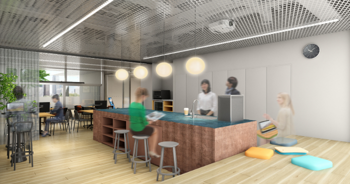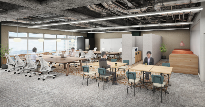 共用テラスやカウンターを備え、集中・交流・リフレッシュがシームレスにつながる、柔軟で快適なワークスタイルを実現しているということです。