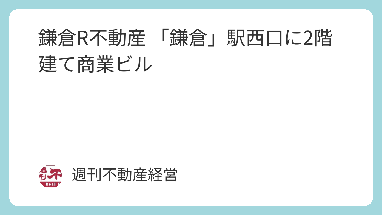 鎌倉R不動産(神奈川県鎌倉市)は「鎌倉」駅西口で商業ビルの開発を計画している。また同ビルに建物完成後も誰もが自由に使える場所を残し、商店街活性化支援へとつなげることを目的としたクラウドファンディングを行っている。竣工は2026年夏を予定している。