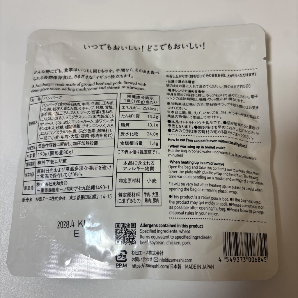 今回は、IZAMESHI「煮込みハンバーグ」を、非常時を想定して実食レビューします。
