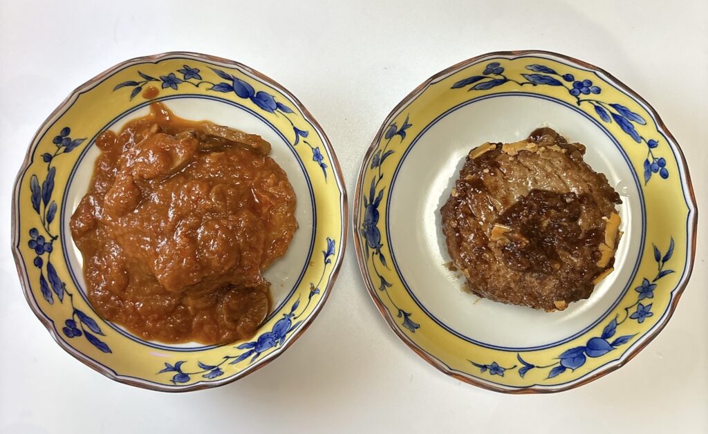 IZAMESHI「煮込みハンバーグ」と、伊藤ハム「旨包ボリュームリッチハンバーグ」を比較|筆者撮影