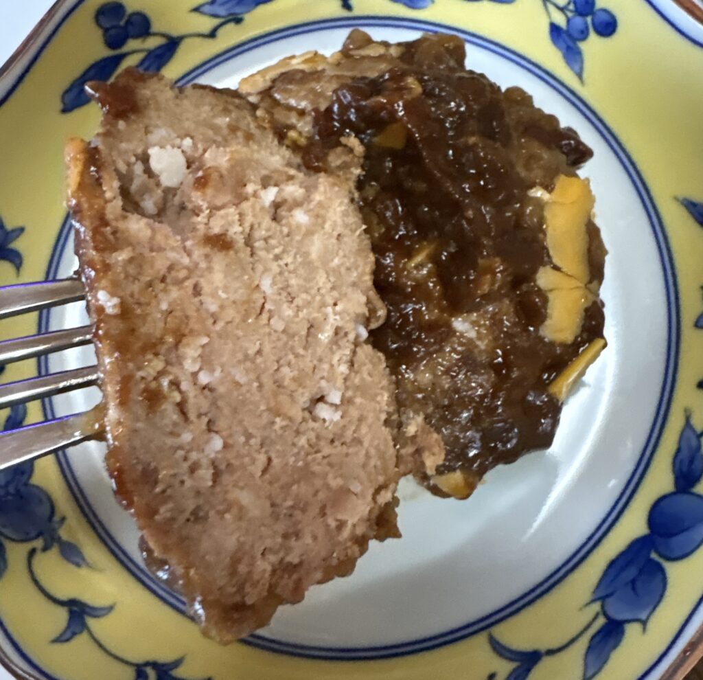 IZAMESHIは温めてもハンバーグの淡白な食感はあまり変わらず、むしろ風味のクセが少し強く感じられるようになりました。