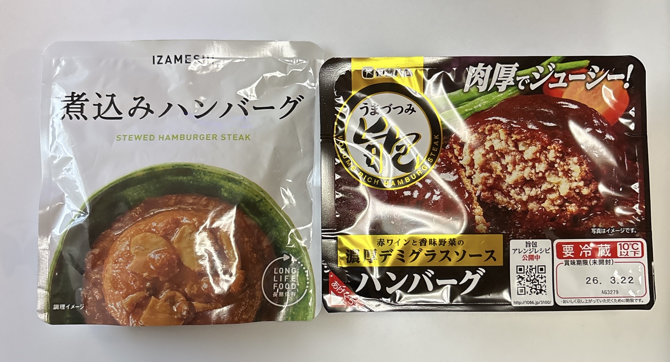 IZAMESHI「煮込みハンバーグ」と、伊藤ハム「旨包ボリュームリッチハンバーグ」を比較|筆者撮影