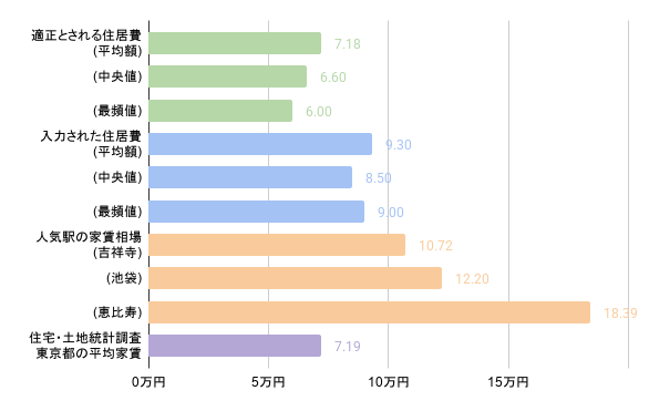 適正とされる「手取りの3割」の住居費は、中央値と最頻値において東京都の平均家賃を下回っています。