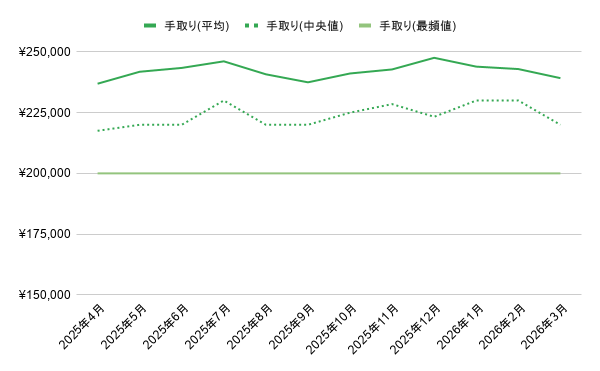 中央値:¥220,000(前月比 -¥10,000)