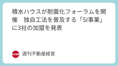 ビル 積水ハウスが耐震化フォーラムを開催 独自工法を普及する「SI事業」に3社の加盟を発表 積水ハウス(大阪市北区)は今月8日、「耐震性向上フォーラム ~良質な住宅ストックを全国へ~」を開催した。会の前半では積水ハウス代表取締役社長執行役員兼CEO仲井嘉浩氏が登壇。戸建て住宅における耐震性能... 2025.01.13 ビル市況・マーケット